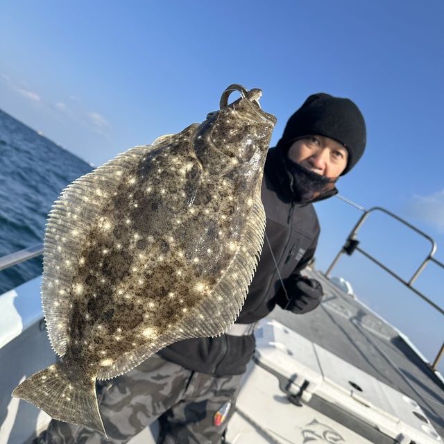35cm ヒラメ 最大57cm 合計2匹 沖合いの沈船での概況、釣果。 概況北西の風、波2m、上り潮。 今日は波高くバラシ数回ありましたがヒラメにマハタが釣れました。 これからもヒラメ青物等に期待でき楽しめます。 仕掛け:固定式ハリス10号一本針り錘50号 (孫針りスバル無しの一本針り)。 餌:小アジ(沖でお客さんに釣って貰います)、 今日も餌の小アジは良く釣れました。 2日からの初釣りは空いてますのでご予約宜しくお願いします。