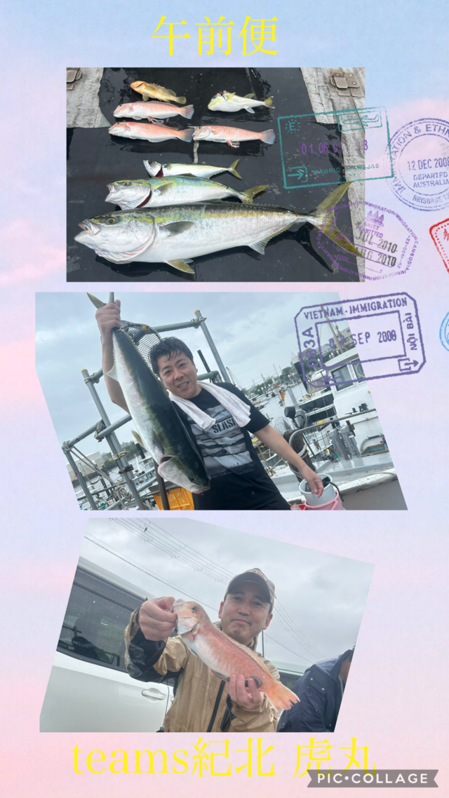 26cm 合計1匹 ブリ 85cm 合計1匹 ハマチ 55cm 合計1匹 サバ 35cm 合計1匹 シロアマダイ 33~35cm 合計3匹 サバフグ 26cm 合計1匹 本日落とし込みもアマダイも難しかったですがなんとかお土産分釣れて良かったです。大雨の中頑張って頂きありがとうございました。またリベンジお待ちしてます。