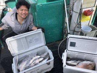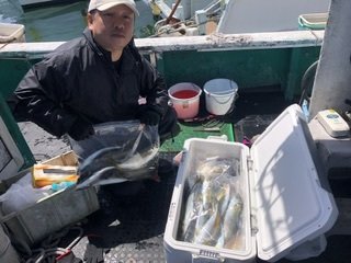 (クロダイ)40~45cm 合計10匹 マアジ 25~38cm 合計25匹 マダイ 48cm 合計1匹 午後船の釣果です