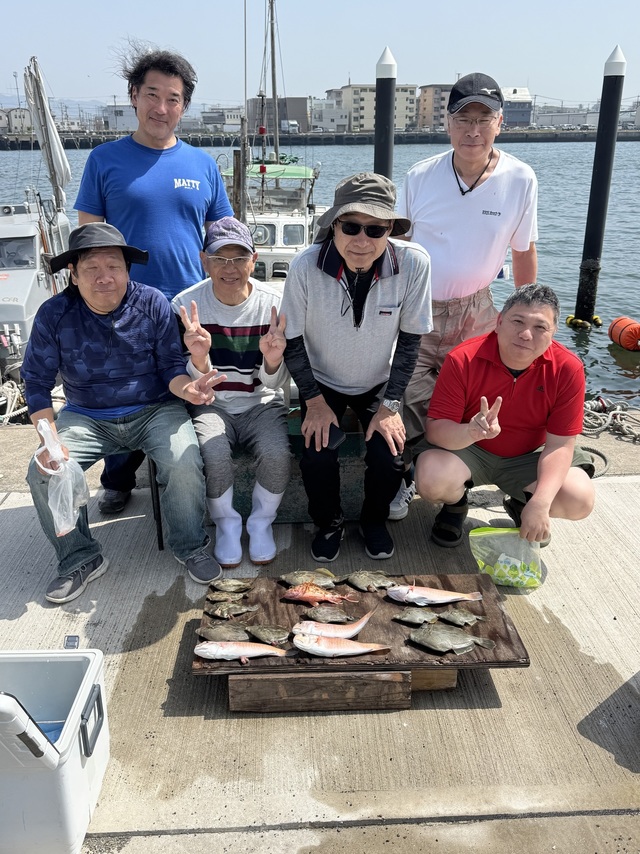 (マコガレイ)30cm 合計1匹 シロアマダイ 33~35cm 1~2匹 カワハギ 20~24cm 3~4匹 本日は貸切便チャーターにお越しいただきありがとうございます。 鯵マダイは撃沈でしたが、アマダイとカワハギが釣れ、お土産を持って帰る事が出来まして良かったです。 またのお越しをお待ちしております。船長
