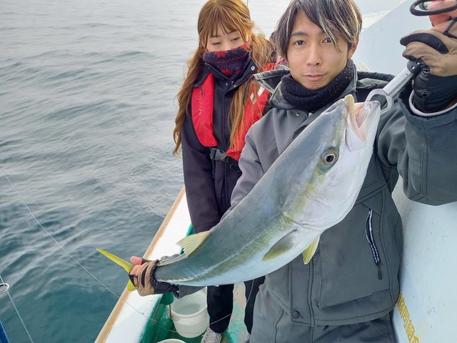 55cm 合計1匹 シロアマダイ 47~55cm 合計6匹 ブリ 90~94cm 合計2匹 新年初出船。 タイラバはチャリコ、チャリコのオンパレード。 気を取り直して青物狙い。 少し南下して鰤1発狙い。 ジグに反応してくれず、飲ませも反応なし、、、。 ベイト反応あったので落とし込みしてもらうと これまた1撃。 ドカンと鰤でした。 その後はフックアウトとこちらも良型ヒラメキャッチ。 少し甘鯛狙いへ。 当たりない状態が続きましたが 当たり出せば連発。 ジャンボも複数キャッチで バランスよく皆さんキャッチでした。 最後にもう1発青物狙いへ。 こちらも飲ませ、ジグ当たらずでしたが 落とし込みでまた1発。お見事でした。 全員キャッチならずでしたが 何とかそれぞれお土産ゲットでした。 これからまた鬼アジ、クログチ、甘鯛と 美味しいもの増えてきますので ぜひ色々チャレンジしてみてくださいね! 本日はありがとうございました! またお待ちしております!