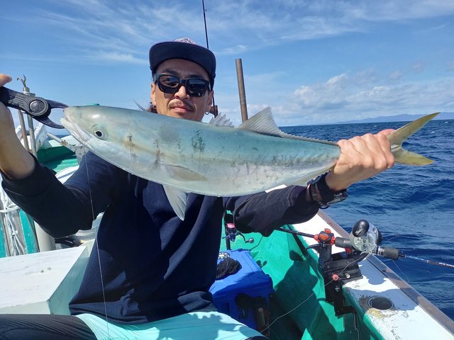 46cm 合計1匹 メジロ 62~66cm 合計5匹 タチウオ 70~100cm 合計60匹 シロアマダイ 32~42cm 合計2匹 本日午前便青物はノマセのみゲット。タチウオはテンヤでもジグでもF4F5混じりで入れ食い。午後アマダイ便は当たり少なく撃沈。ありがとうございました。またリベンジお待ちしてます。