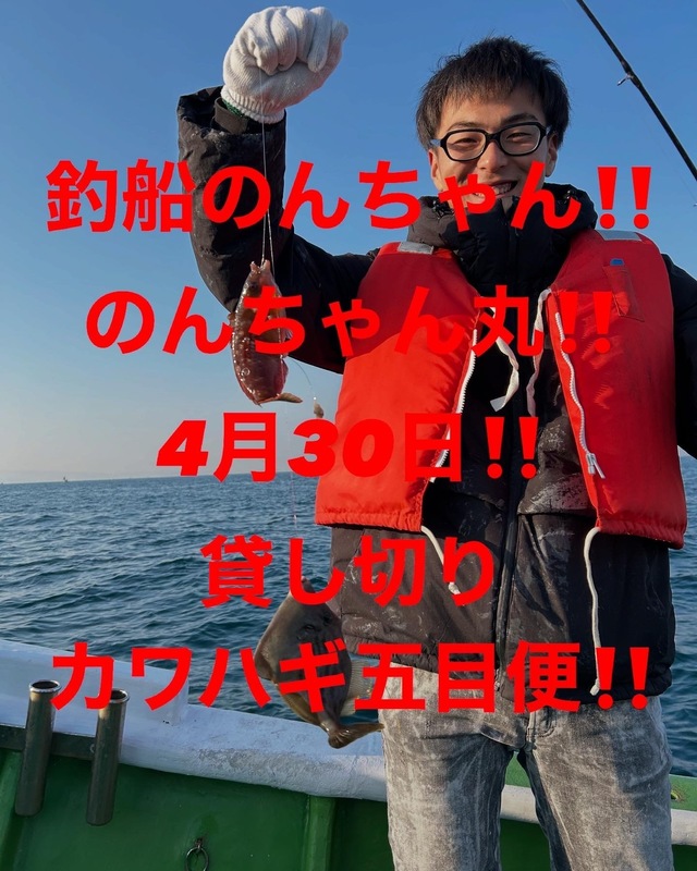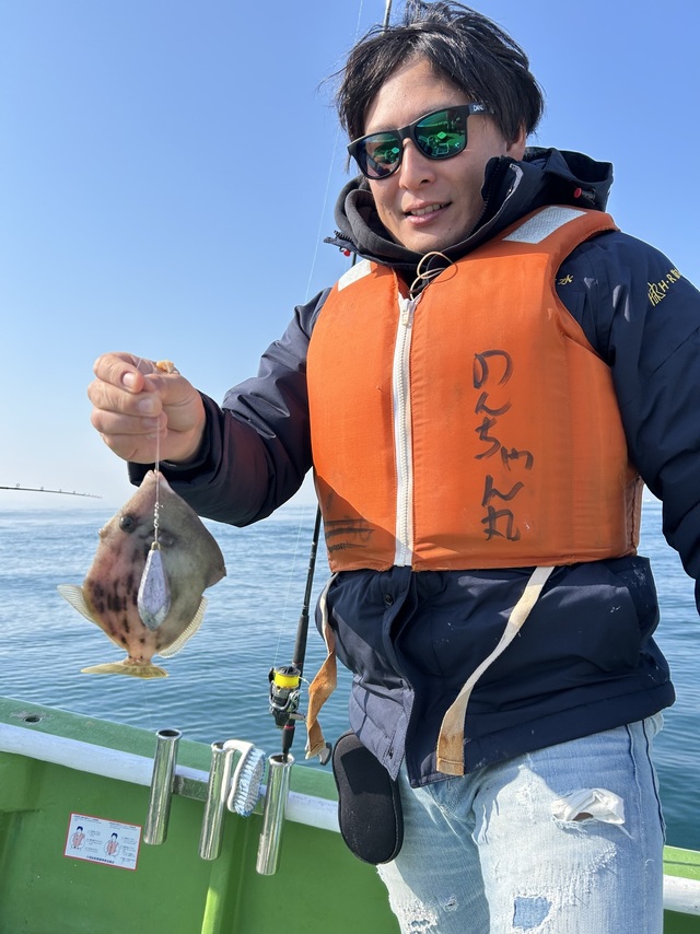 30cm 合計1匹 カワハギ 穏やかで釣りやすい日でした 少し掛けるの難しい時間もありましたが 全員ツ抜け、トップ47枚、2番手39枚 ワッペンから泣き尺、良型混じりで釣って貰えました 春カワハギは5月末までで、次は9月からの肝パンシーズンからになりますので宜しくお願いします