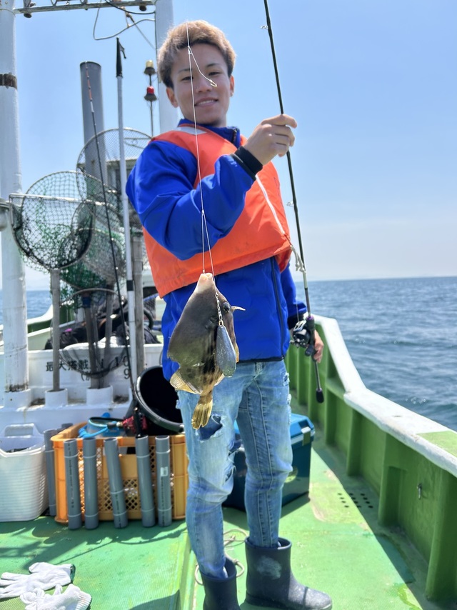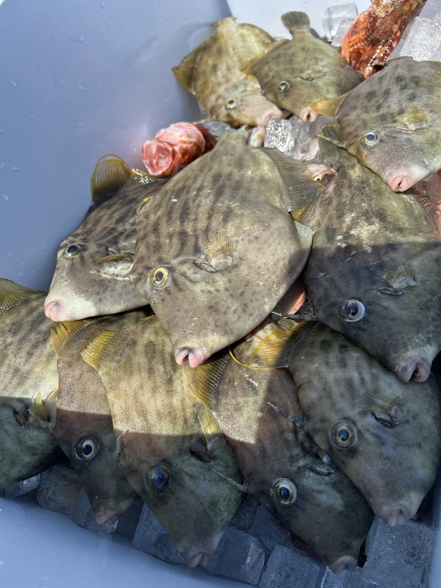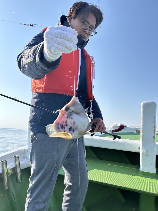 26cm 合計1匹 貸し切りカワハギ五目便。 本日は天気も良く釣り日和でした。 フルレンタルでの釣行で何とか全員お土産を釣っていただけました。 カワハギの活性は少しくいは渋く、餌を上手に動かさないとよって来ない感じがしました。 でも凄くテクニカルで面白いと思います。 本日はありがとうございました。
