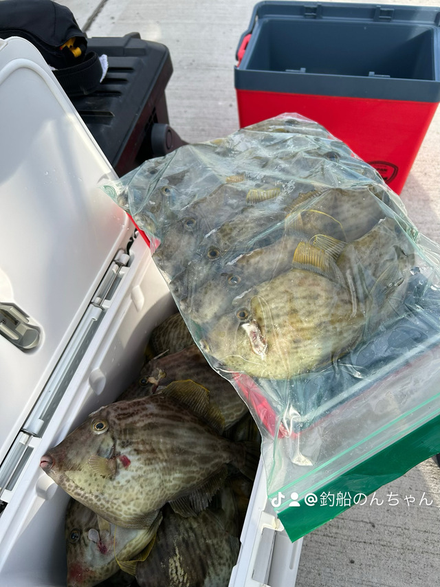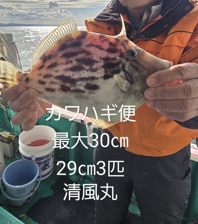 カワハギオンリーでした。 風波ありましたが 風裏メインでやりました。 序盤当たり少なかったですが 中盤からコンスタントに釣れ続けてくれて 良型も連発しました。 徐々に水温に慣れたのか 良い感じに釣れてきてくれています。 肝パンで美味しそうですね!! 本日はお疲れ様でした! またお待ちしております!
