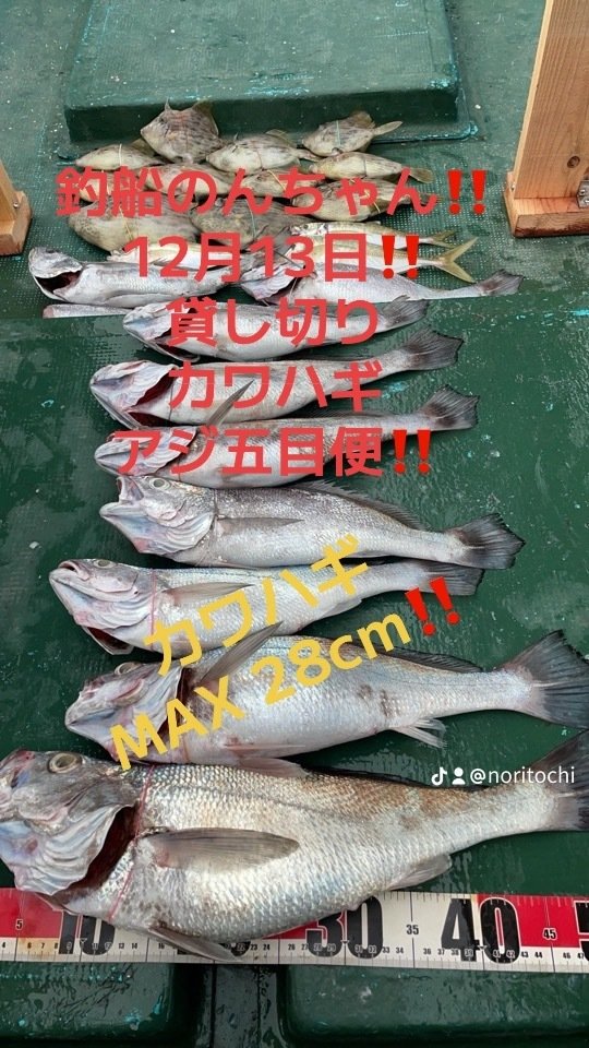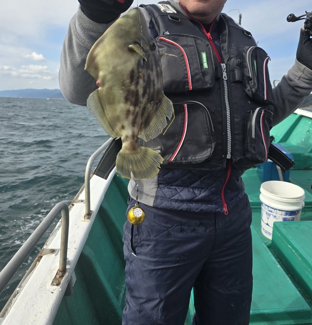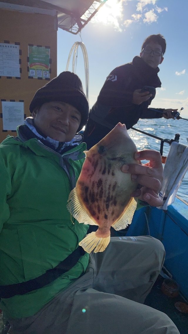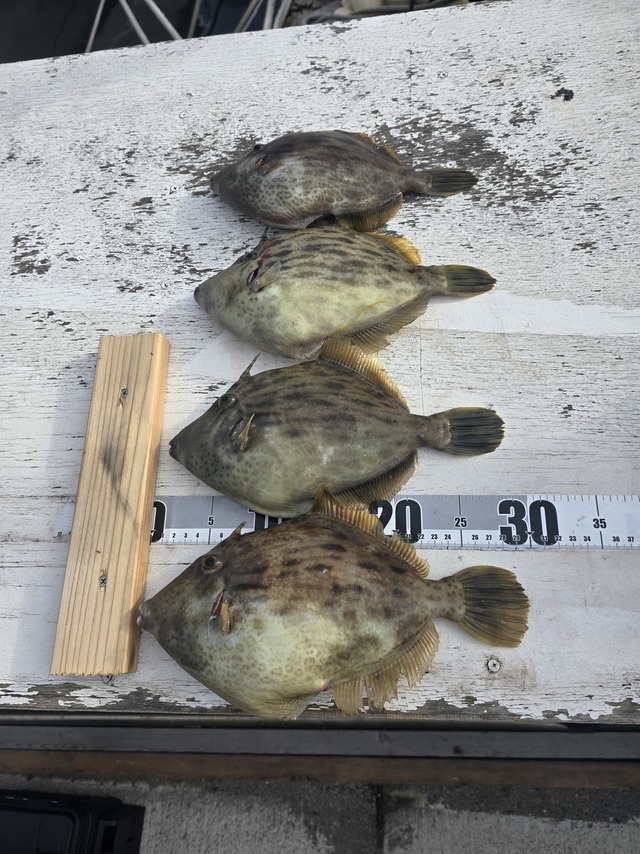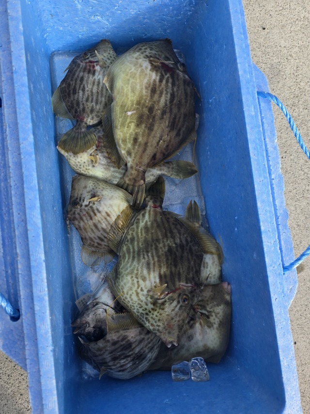 35cm 合計1匹 カワハギ 半数のお客様が初カワハギ 数釣りポイントがイマイチなので、終始サイズ狙いで頑張ってもらいました 数はみなさん10枚前後でしたが、掛かれば大型や良型出やすく ハスも多数混じってくれて楽しんでもらえたと思います