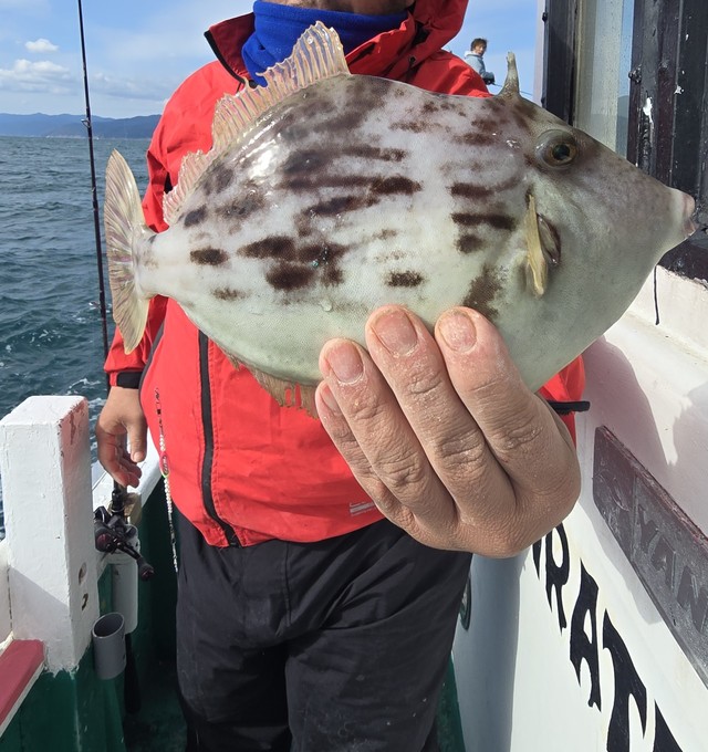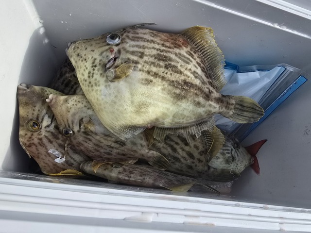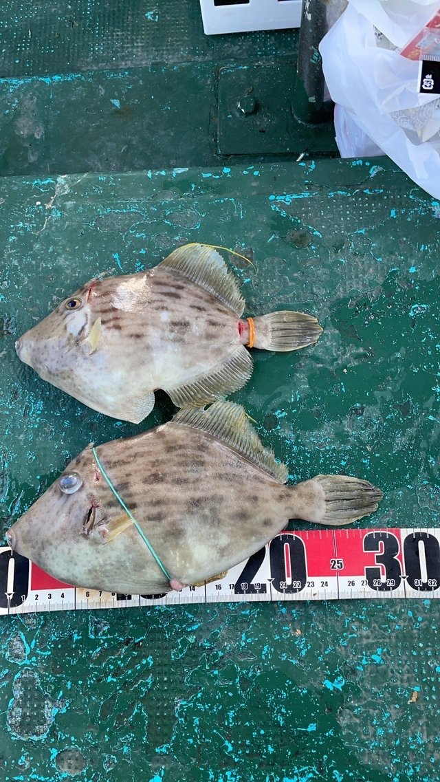 23~30cm 合計20匹 シロアマダイ 47~51cm 合計2匹 甘鯛、カワハギでした。 波風ある予報だったので 遅出しました。 まず甘鯛狙いでしたが 予報より波高めで すぐキャッチして頂けましたが 風裏のカワハギへ移動。 ポツポツキャッチでサイズ良かったです! 泣き尺までポロポロキャッチ。 最後に甘鯛少しだけ。 当たりありましたが外れたりで 数あがらなかったですが こちらもジャンボキャッチ! 本日は波風ある中お疲れ様でした。 またお待ちしております!