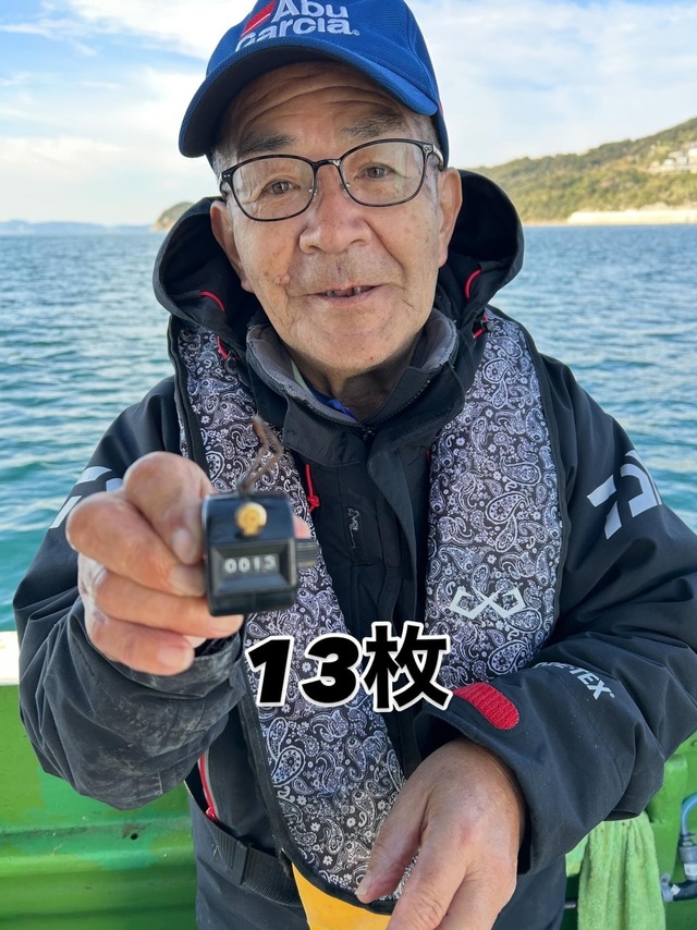 24cm 合計1匹 カワハギ便。 本日は雨が降り凄く寒い中でした。 前半、雨のせいか当たりも無くエサも取られない時間があり、中盤から後半はやっと魚も上がってきだしポツポツ掛けてくれました。 トップ12枚、次頭10枚で半数以上ツ抜けでした。 本日はありがとうございました。