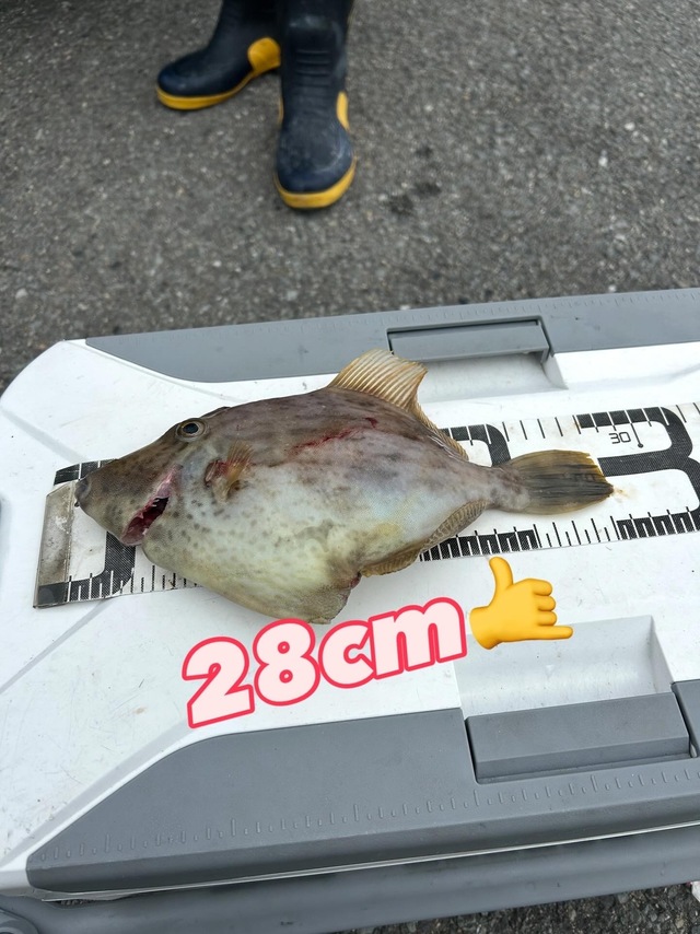 28cm 合計1匹 カワハギ 前半の数釣りはサイズは小さ目でしたが少しだけ掛けやすく、直ぐにツ抜けのお客様も 良型狙いは雨降って薄暗いこともあって当たり出やすかった時間は短目で苦戦でしたが 少し良型釣って貰えました 月曜、火曜は波風厳し目でお休みで水曜から出船予定です