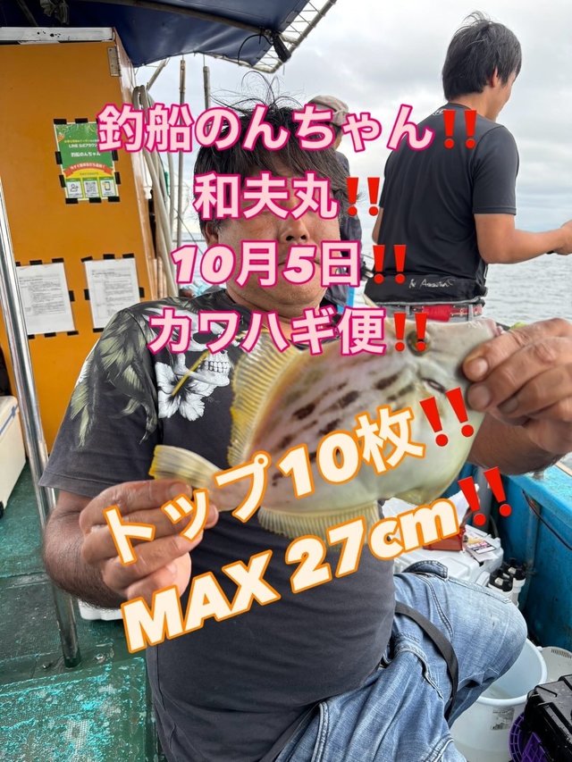 26cm 合計1匹 カワハギ便。今日は最近あたってなかった平場のポイントでポツポツ釣れたので、雰囲気いいですよ。トップ15匹、2番手11匹でした
