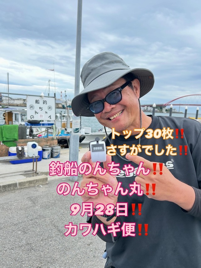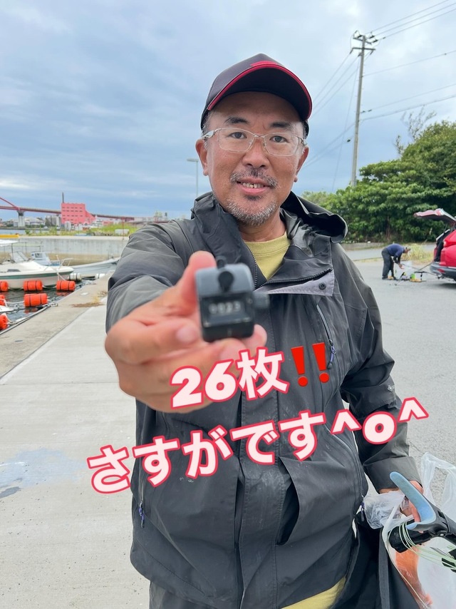 26cm 合計1匹 カワハギ便。 本日は8割サイズ狙いでした。 いよいよ本格シーズンでカワハギのコンディションも抜群でした。 トップ30枚さすがでした。 本日はありがとうございました。
