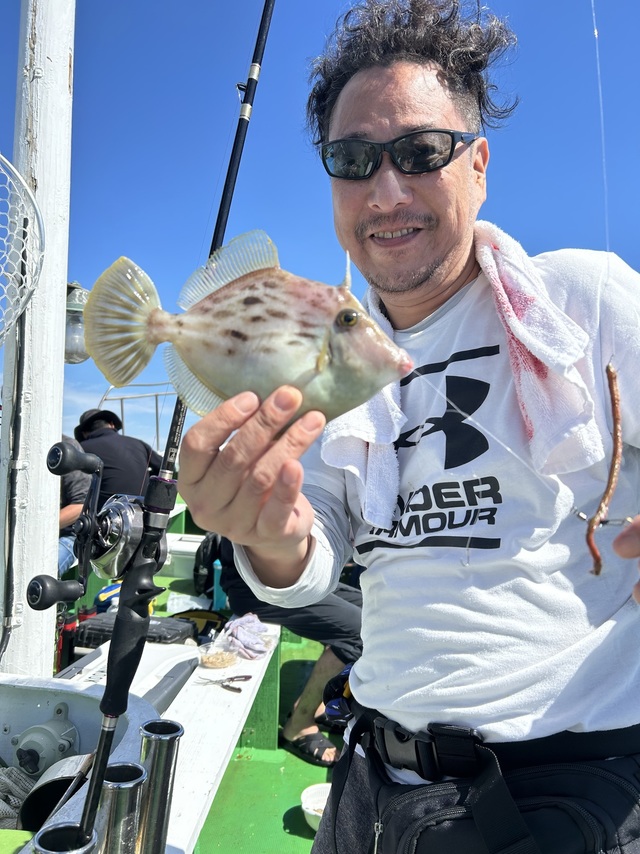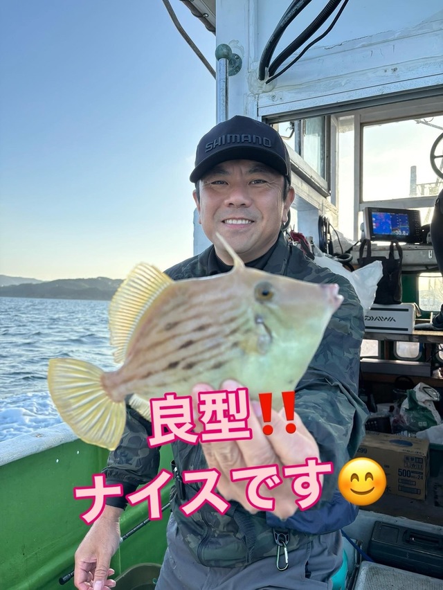 26cm 合計1匹 カワハギ便。 本日はかなり難しい1日でした。 6割はサイズ狙いで良型も皆さん釣っていただいて、何とか肝パンのお見合いも出来ました。 エサが取られる人、取られない人がいます、恐らく誘い方だと思います。 素早くパターンを見つけて、いっぱい釣って下さいね。 本日はありがとうございました。