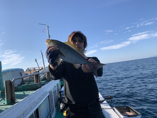 40cm 合計1匹 マダイ 56cm 合計1匹 午後船の釣果です五目釣りで出船ですヤイトガツオ、良型イサギ釣れました