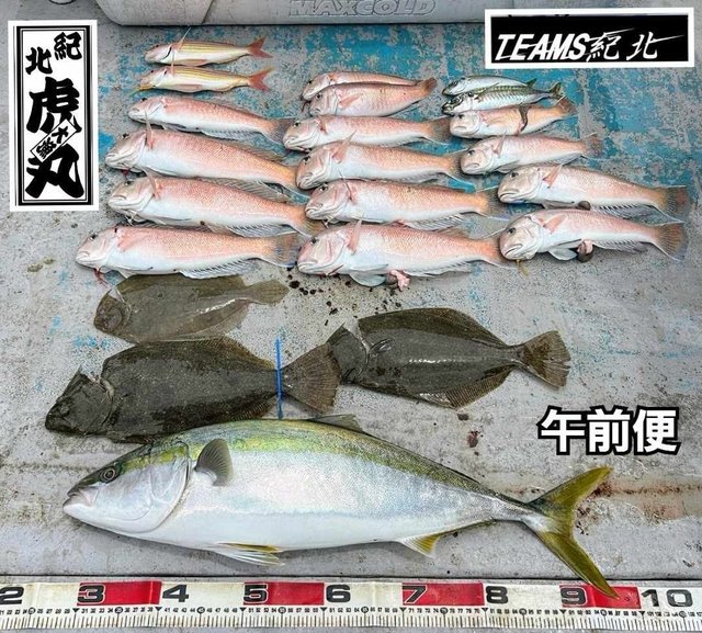(キチヌ)37~40cm 合計2匹 シロアマダイ 26~43cm 合計30匹 ヒラメ 53cm 合計1匹 タイ 43cm 合計1匹 ソコイトヨリ 25~25cm 合計3匹 ガシラ 27cm 合計1匹 アジ 30cm 合計1匹 ガンゾウヒラメ 35cm 合計1匹 本日アマダイスタートでいいサイズも混じりよく釣れました。落とし込みはベイト山盛りでしたが本体の活性悪く撃沈。ありがとうございました。またリベンジお待ちしてます。