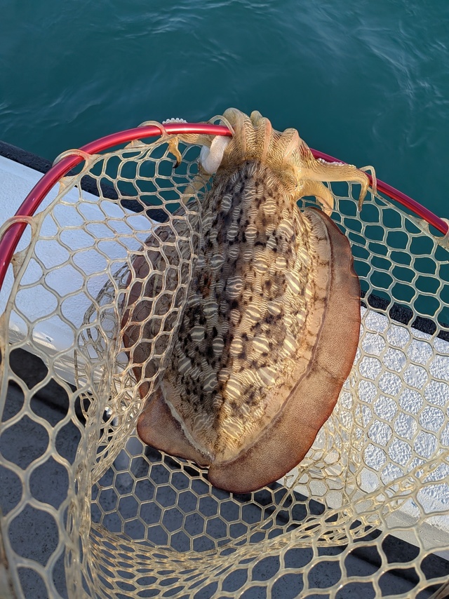 0.90kg 合計1匹 本日アオリイカティップラン便 女性アングラー3名での釣行でした 今日は波も風もなく、久々のベタ凪 船もほどよく流れていい感じのコンディション! ポイント到着後、レクチャーのためにエギを落とすと 着底後すぐにHIT 幸先よくスタートしたので これはいけるかと思いましたが… その後はなかなか続かず修行モードに それでも最後まで頑張っていただきありがとうございました