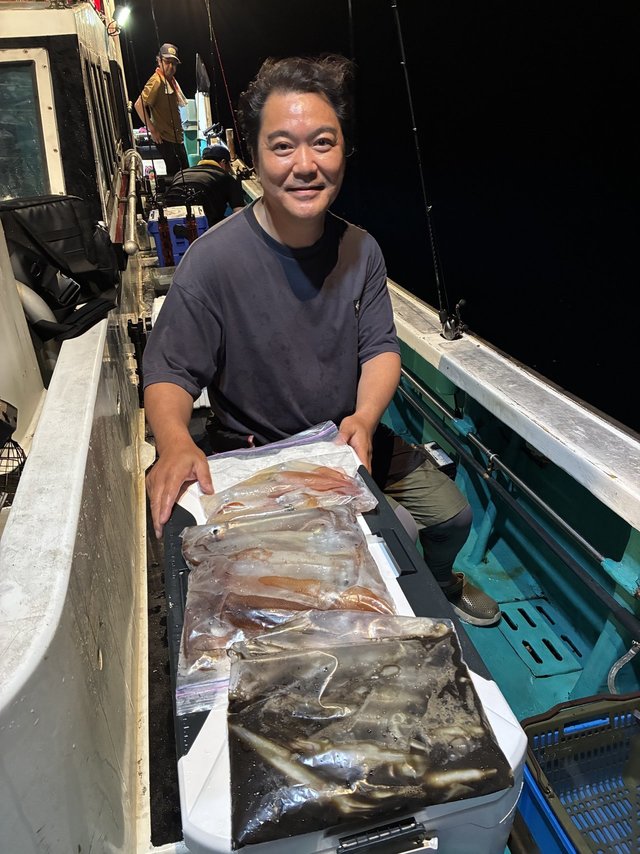 (ケンサキイカ)10~16cm 17~41匹 夜便アカイカ釣りに出船しました! 前半ポロッとアカイカのアタリありでしたが後半はスルメラッシュでした〜 スルメの活性めちゃ高かったです! アカイカよりスルメイカしか多かったですが皆様アカイカ、スルメイカでお土産に! 釣果はスルメ込みの釣果です。 本日も夜便アカイカ釣りに出船します。 空きあります! ご予約受付中です。 気軽にお問い合わせ下さいm(__)m
