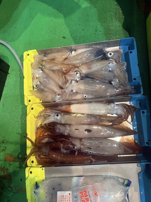 20~30cm 4~43匹 アカイカ 10~22cm 0~5匹 夜便アカイカ釣りに出船しました! 今日も潮めちゃ速かったですが道具やれました! でもアカイカさんのご機嫌ナナメでした… けど、スルメのアタリありでした! 少ないお客様もいてましたが半分以上のお客様がつ抜けでした! アカイカはゲキシブでしたが釣れれば良型混じりでした。 アカイカ、今後に期待です! 13日も出船します! 空いてます。 当日ご予約大丈夫です! 気軽にお問い合わせ下さいm(__)m