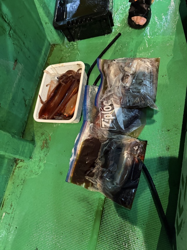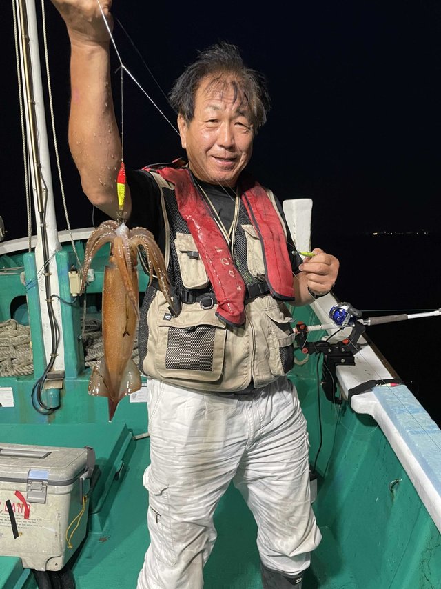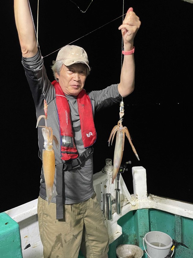 (スルメイカ)アカイカ ちょっと風あったので涼しかったです。 スルメしか多かったです。 そのスルメも釣りにくいです。 トップは胴突き仕掛けの23匹でした。 イカメタルは14匹でした。