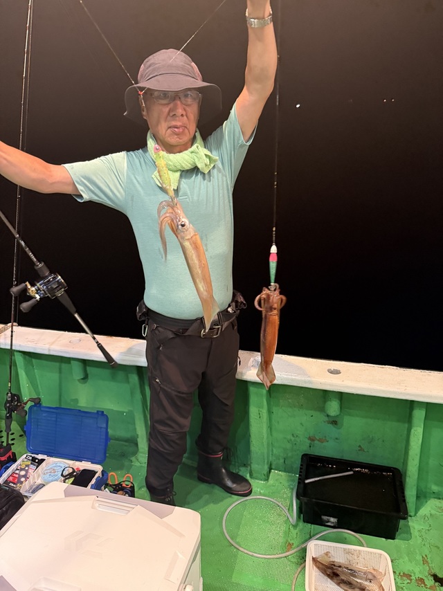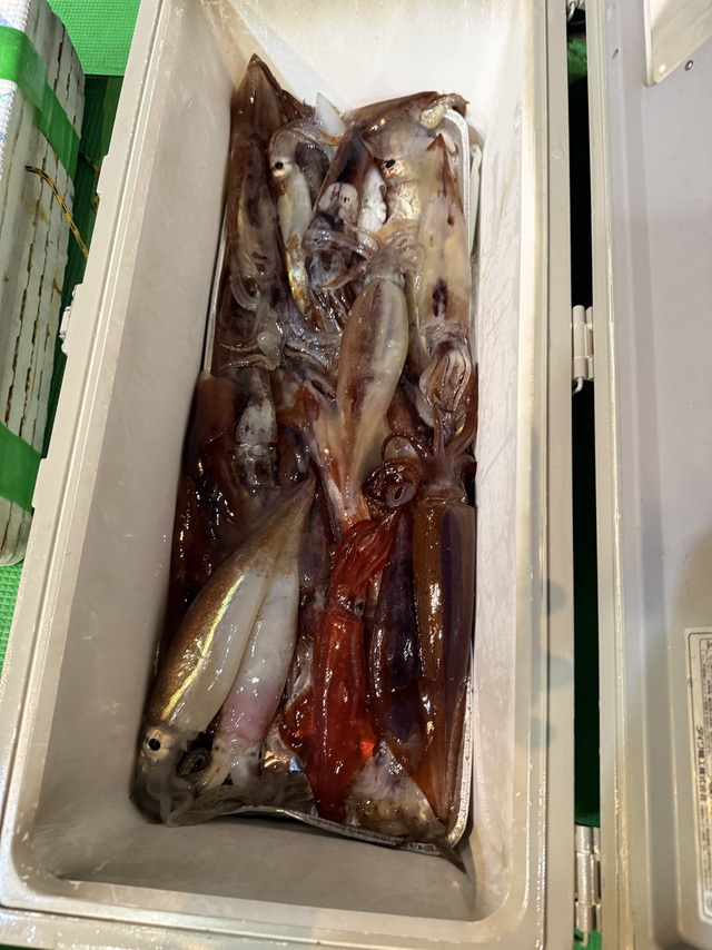 アカイカ アカイカ狙いに出船しました。皆様に頑張っていただきましたが、激渋でアカイカ、スルメイカ込みでTOPの方15匹でした。今後良くなる事に期待したいです。