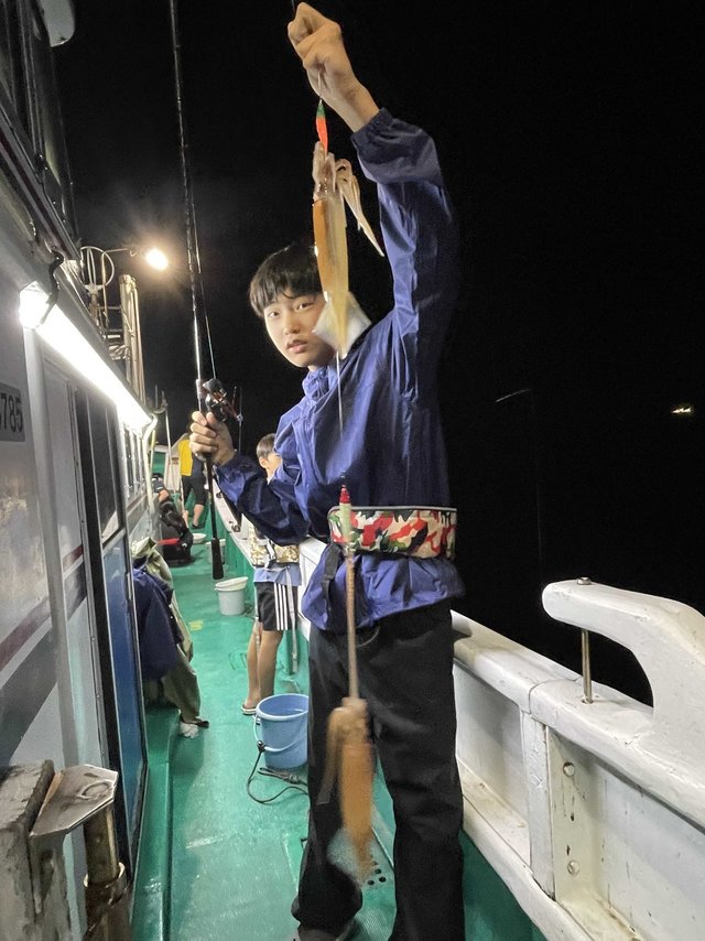 (スルメイカ)アカイカ なんとか天気はもちました。 イカメタルデビューおめでとうございます! やはりスルメしか多かったです。 前日よりアカイカは釣れましたが、やはり少なかったです。 後半しか活性よかったです。トップで48匹でした。