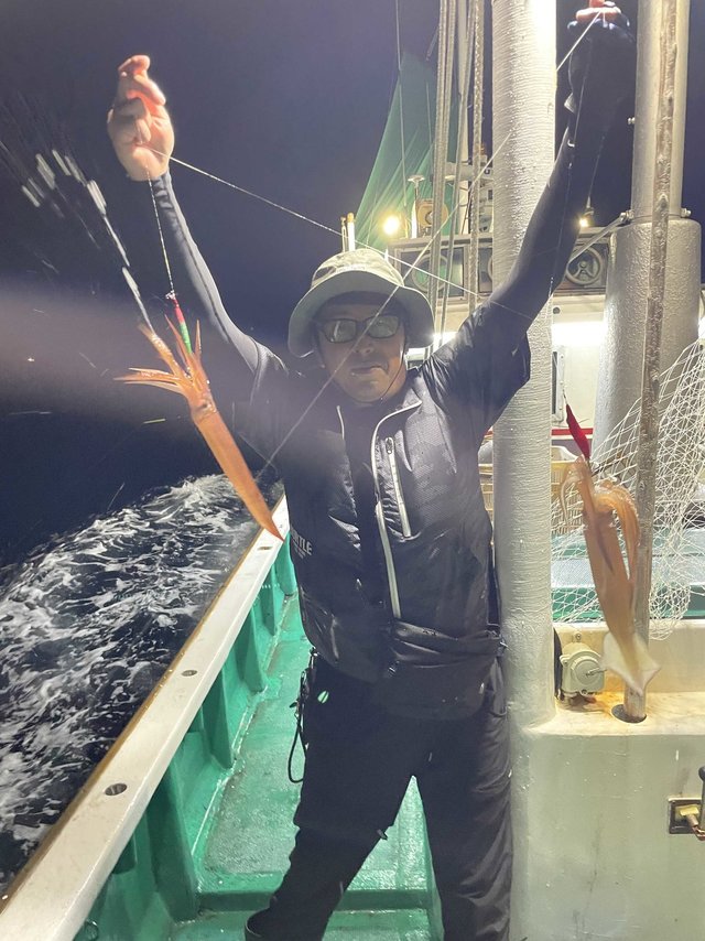 17~30cm 7~22匹 アカイカ 12~25cm 2~8匹 夜便アカイカ釣りに出船しました! 今日もスルメのアタリはありましたがアカイカ渋々でした… アカイカ求めてポイント移動しましたがどのポイントもは顔見れましたがスルメさん多めでした。 釣れれば良型アカイカ混じりでしたが数あまり釣れずでした。 アカイカは少なめでしたが皆様頑張って釣ってくれて竿頭様でアカイカ、スルメ合わせて24ハイの釣果に。 船酔いされたお客様もいてて皆様がお土産にはならずでしたが道具されたお客様は皆様お土産に! 本日7日は悪天候な為休船します。 ご予約いただいてましたお客様申し訳ありません… 天候回復次第出船しますのでよろしくお願いします! 夜便アカイカ釣り! ご予約受受付中です。 当日ご予約大丈夫です! 気軽にお問い合わせ下さいm(__)m