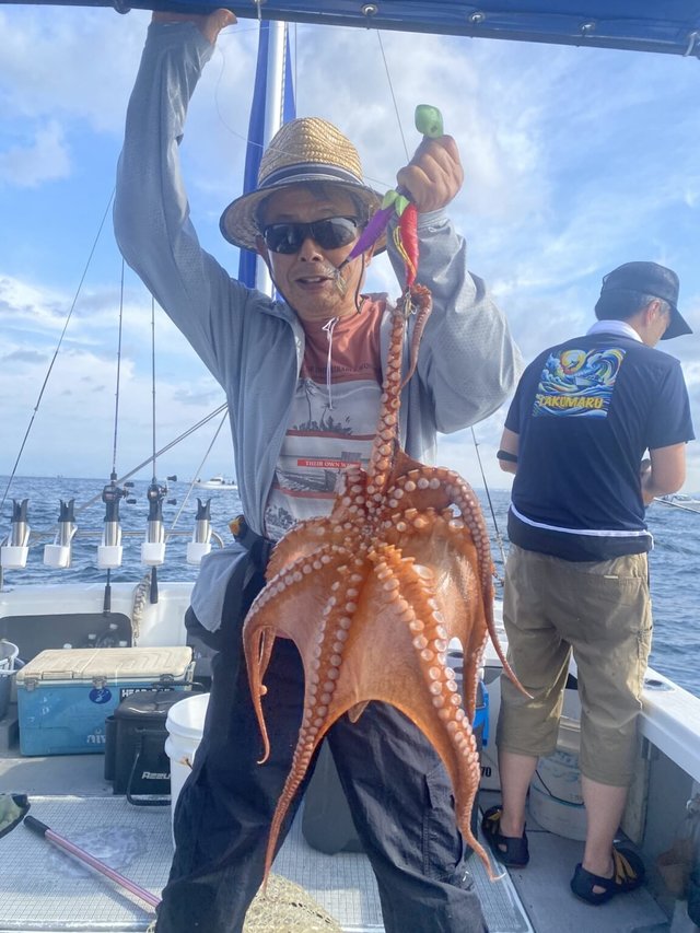 (マダコ)2.59kg 合計1匹 タイ 35~55cm 合計5匹 ヒラメ 43cm 合計1匹 サバ 42cm 合計1匹 ハマチ 50~55cm 合計5匹 オコゼ 30cm 合計1匹 ガシラ 25cm 合計1匹 本日タコスタートでウネリキツく撃沈。落とし込みはウネリ濁りキツかったけどなんとか釣れて良かったです。全員安打出来ずすいませんでした。またリベンジお待ちしてます。ありがとうございました。