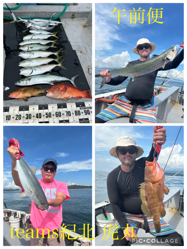 50~55cm 合計2匹 メジロ 65~70cm 合計9匹 マダイ 47cm 合計1匹 タチウオ 70~100cm 合計50匹 青物&太刀魚。 太刀魚はポロポロと良いサイズも混ざり 楽しめました。 青物はパターン掴めば 連続ヒット! ナイスサイズのアコウやタイも混ざり 楽しんでいただけました! 本日はありがとうございました! またお待ちしております!