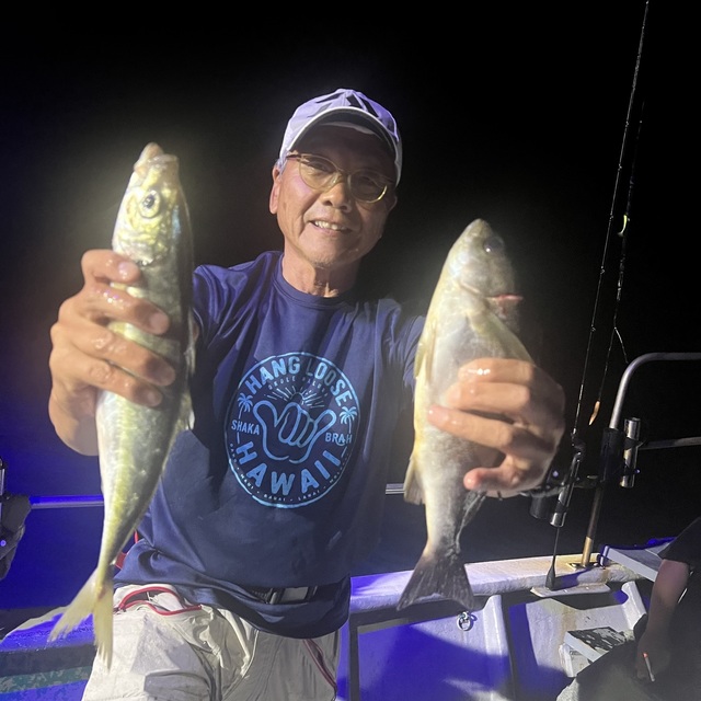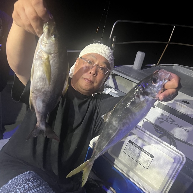 (マアジ)30~52cm 合計100匹 イサキ 35~43cm 合計20匹 ナイトバチコン便。 パターンによってイサキになったりアジになったり 中アジの活性高過ぎて 底に着く前にヒット。 底に届けばデカアジ、誘い方変えれば 良型イサキ! 終始ボコボコで楽しめました! 終盤戦入って来てますが まだまだ楽しめそうですね! イサキ抜けたら終わりとなりますので ぜひ早めにご予約お待ちしております! 本日はありがとうございました! またお待ちしております!