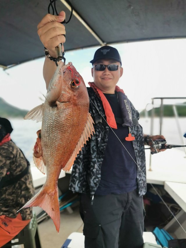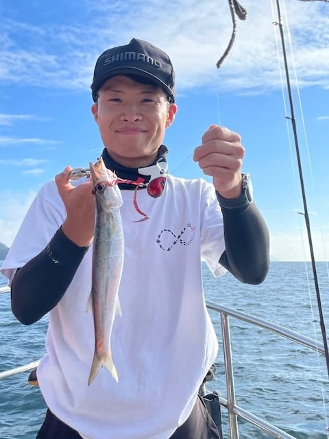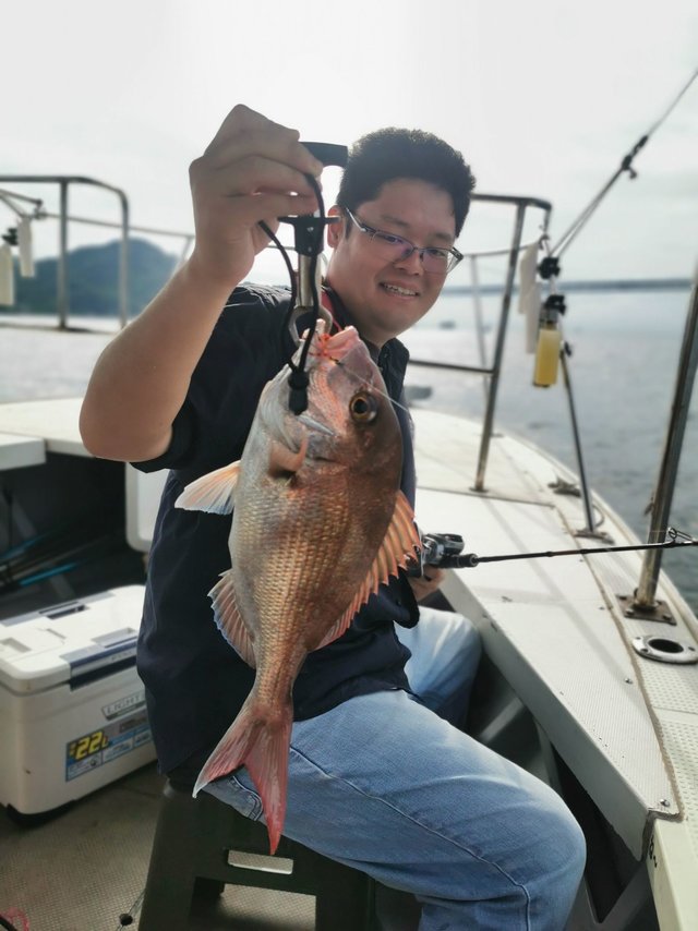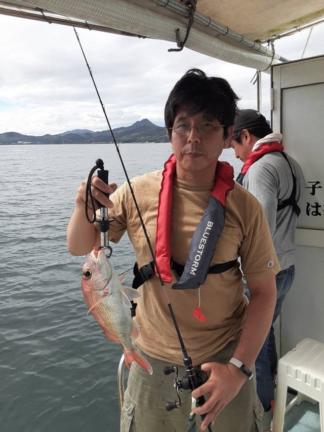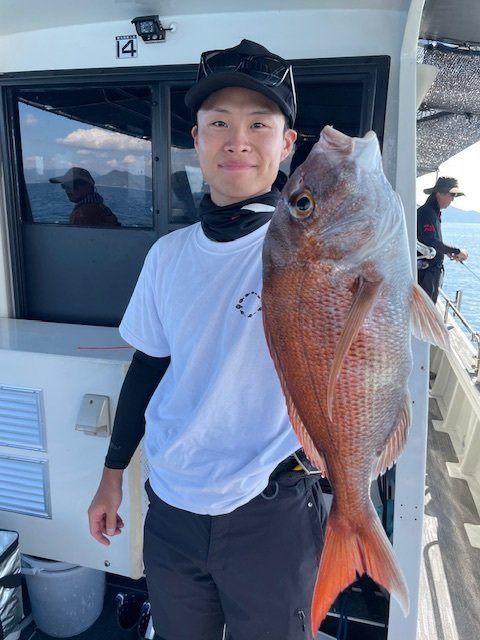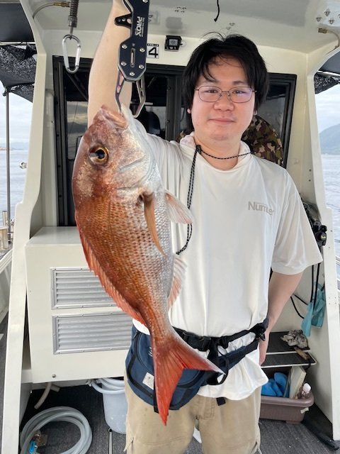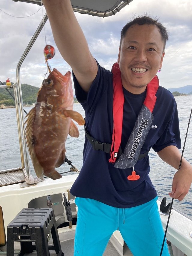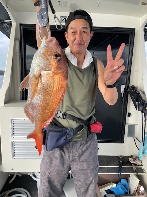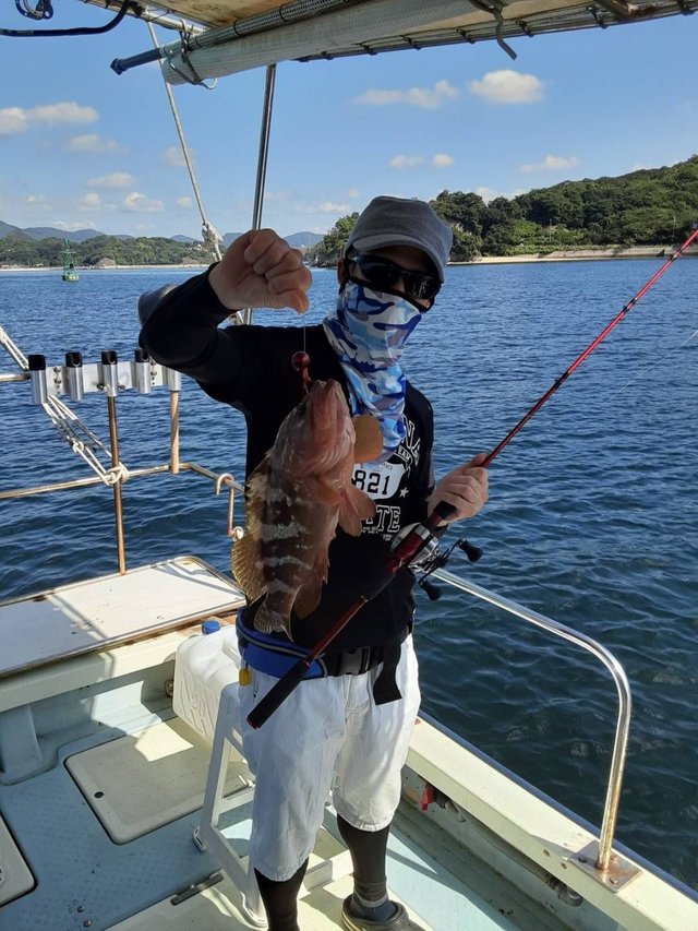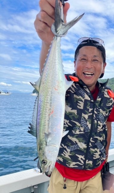 ①海正丸。 どんどん暑くなっているため、少し早めの出航。朝一、アコウがポツポツと。タイはご機嫌。。。なんとかタイもゲット!またのご乗船お待ちしております。