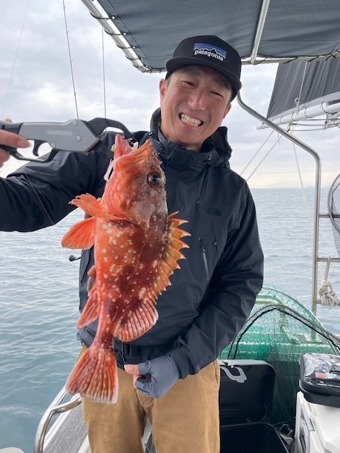 アコウ ④新政丸。今日は船釣り初めてのお客様!これはお子さんに釣ってもらいたい。悩みながら操船していると船の前から「キタキタ~」。良い型のタイとアコウが釣れ安心。本日の乗船ありがとうございました。