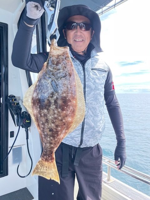 ヒラメ ⑤リベルタス。下げ潮狙いでパタパタと来るを狙い、掛ける人もバレる人も。今日もワイワイと笑顔に癒されました。またのご乗船お待ちしております。