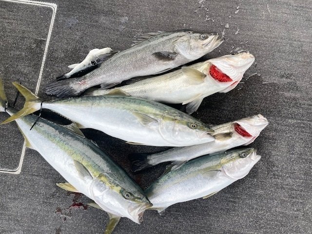 78cm 合計1匹 サワラ 45~82cm 1~9匹 ブリ 66~81cm 1~1匹 タイ 42cm 合計1匹 朝イチ、サワララッシュからスタート! その後長い沈黙。。??? 終了間際にブリ、スズキ、サワラで納竿。。