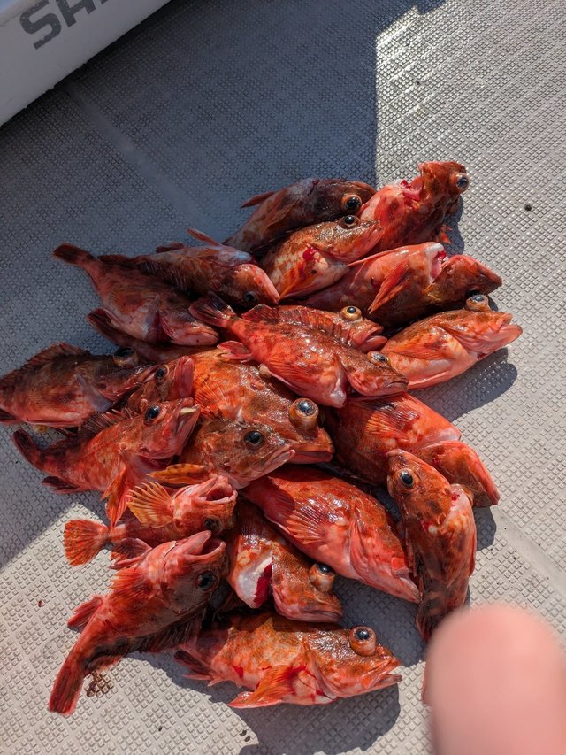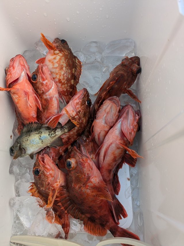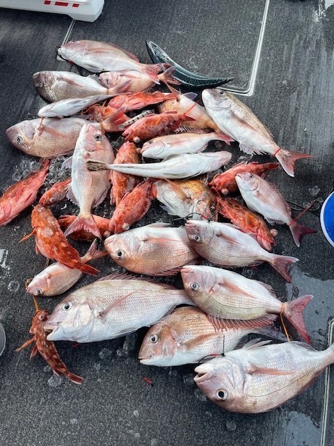 18~23cm 15~20匹 カサゴ?タイラバリレー便 カサゴを少々狙い、タイラバで真鯛狙いです。 釣れない方が1名いらっしゃったのが心残りで残念でした。 真鯛は小ぶり~70cmまで カサゴ18-23cm1人15-20匹 他、ヤズ、マダイ 【予定】 17(土)×、18(日)タイラバ便募集中