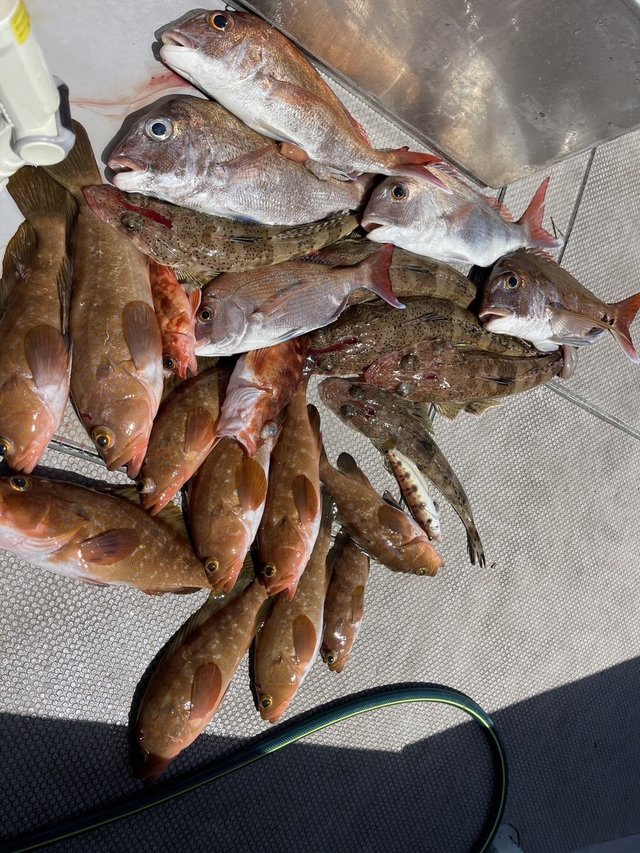 17~24cm 15~30匹 カサゴ便 最近は波が高い日が続いていましたが、今日は波が収まりました。 カサゴ20cm前後、15-30匹 【次週の予定】 24(月)タイラバ便(出船確定) 29(土)カサゴ(メバル)便 30(日)カサゴ(メバル)便 募集中です!! 090-7122-6133までお問い合わせお待ちしております。 無料レンタルタックルもございます。 ご家族で、会社のレクレーションなどにお使いください。
