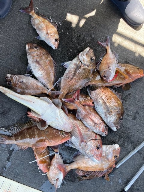 50~57cm 0~2匹 マダイ 30~58cm 0~3匹 アコウ 37~47cm 0~1匹 チヌ 35~37cm 合計2匹 鯛ラバ出船でしたが1発目から40UPアコウが3連チャンでした。ポイント移動後本命の真鯛♪出遅れましたが全員がお土産は確保出来てホッとしました。真鯛10マゴチ3アコウ3チヌ2ワニゴチ1 本日のご乗船ありがとうございました。写真はいつも通り全ては撮ってません。 明日27日は予約がなさそうなのでお休みとさせていただきます。