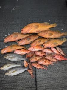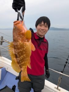 キジハタ カサゴ 遅出船。 ん?なんか朝から渋い、おかしい…。 反応めちゃくちゃ良いのにポツポツ…。 と、突如特大マグロ爆誕! どれもが100kg楽に超えてるサイズの黒マグロがあちこちで跳ねまくり…。 いやいや、要らんねん…。 あけみはいつも呑気でえーなぁー笑。