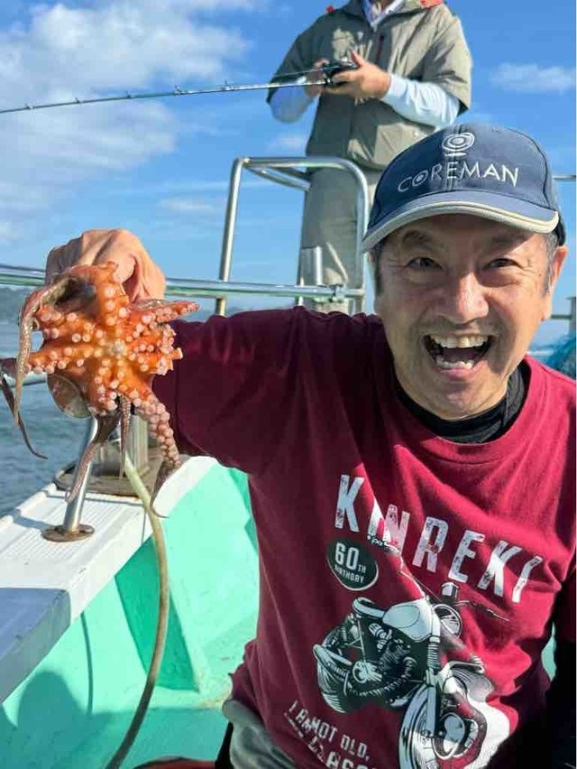 (マダコ)本日は終日タコ出船 画像ボケまくりですが、3KG!! おめでとうございますね おめでとうございますね それにしても、タコは動きまわって画像撮りにくい~笑笑 皆、上手い事撮るなぁ~と感心したのでありました 皆様、ありがとうございました