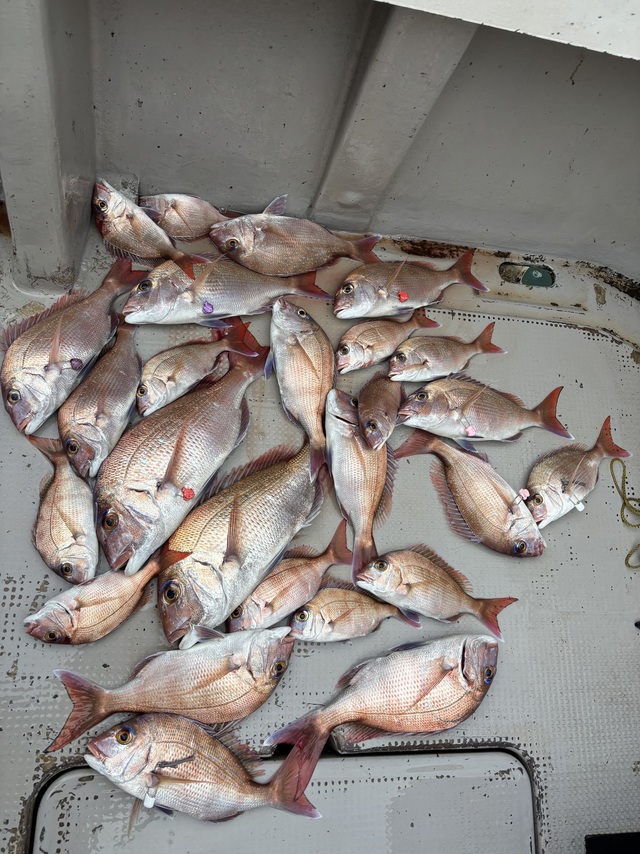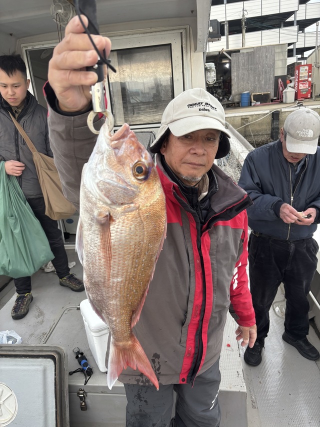 朝の潮動かず、アタリが遠かったため作戦変更ポイント変わると真鯛上がり出し今日はお客様少人数でしたので、皆さん真鯛ゲットとなりました。年末年始空いていますので、よろしくお願いします。