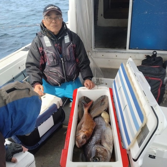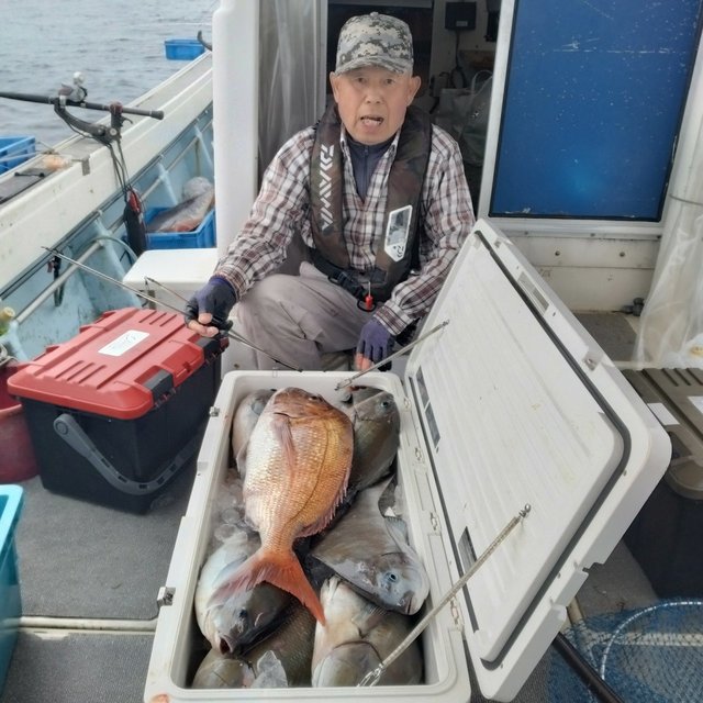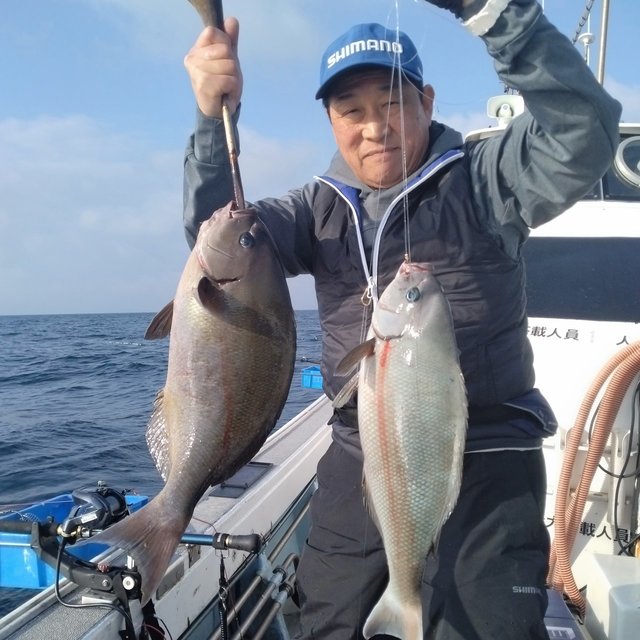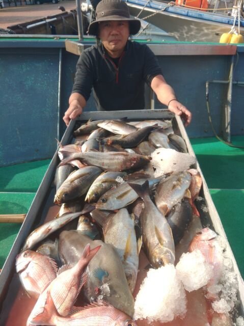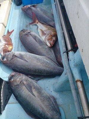 1.00~4.00kg 0~4匹 コシナガ 1.00~2.00kg 0~3匹 カサゴ 20~30cm 合計2匹 ネリゴ 30~40cm 0~2匹 ハマイサキ 40cm 合計1匹 ハガツオ 2.00~3.00kg 0~2匹 チカメキントキ 40~60cm 0~1匹 ヤリイカ 15~20cm 0~2匹 アオナ 45cm 合計1匹 イサキ 20~30cm 0~5匹 お疲れ様です! 前半は厳しい状況でした 終盤ぱらぱらと釣れ まずまずの釣果でした 本日はありがとうございました! またの乗船お待ちしてます!