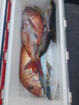 ヤズはずっと当たり続けてきてそれにヒラス、コシナガ、真鯛などたまに混ざる感じで良く釣れました!
