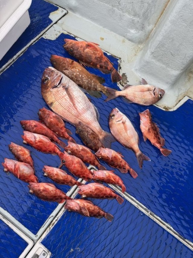 久々に凪出船‼ 鯛ラバ&SLJ行ってきました。 暑さは少々残ってましたが、海の中は すっかり秋色に染まってました。 真鯛、根魚中心に良型混じりで、数も 大漁でした。 持ち帰り分以外は、良型でもリリースして 頂きました、有難う御座います。 途中青物、サワラ、コシナガ等も掛り、 ブレイクするなどのシーンも有りましたが、 今回はキャッチならずと、残念な場面も 有りましたが、鯛ラバ&SLJ楽しめる 季節に突入しましたよ。 挑戦者募集中です。 本日は、ご乗船有難うございます。