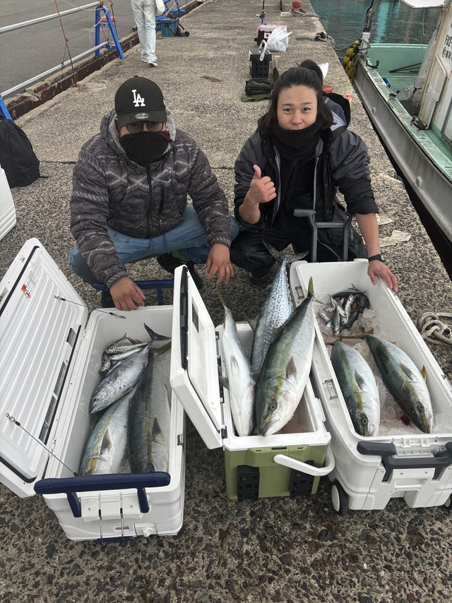 (ブリ)1.00~5.00kg 0~4匹 ヒラマサ 11.00kg 合計1匹 ヒラメ 1.00~3.00kg 0~2匹 サワラ 3.00kg 合計1匹 マトウダイ 30~40cm 0~2匹 お疲れ様です! 朝一は餌付きよくポツポツら当たりましたが途中から悪くなり厳しい状況でした、 今日は魚種が多く見れる日でした 本日はありがとうございました! またの乗船お待ちしてます!
