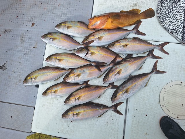 6.00kg 合計1匹 ヤズ 1.00~4.00kg 0~2匹 コシナガ 2.00~5.00kg 0~2匹 ネリゴ 4.00kg 合計1匹 サワラ 2.00~4.00kg 0~2匹 お疲れ様です! 餌付きはいいんですが 肝心の魚がなかなか当たらず 厳しい1日となりました、 本日はありがとうございました! またの乗船お待ちしてます!