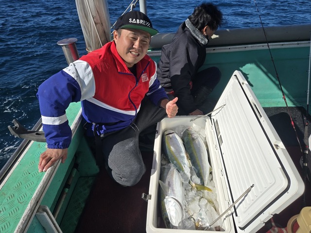 3.00~5.00kg 0~1匹 ヤズ 1.00~6.00kg 3~6匹 コシナガ 3.00~5.00kg 0~1匹 ヒラメ 3.00kg 合計1匹 マダイ 4.00kg 合計1匹 今日は終始エサ付き良く魚も良く当たっていました。ヤズ中心でしたが良く釣れて良かったです。 ありがとうございました。 またのご乗船お待ちしております!