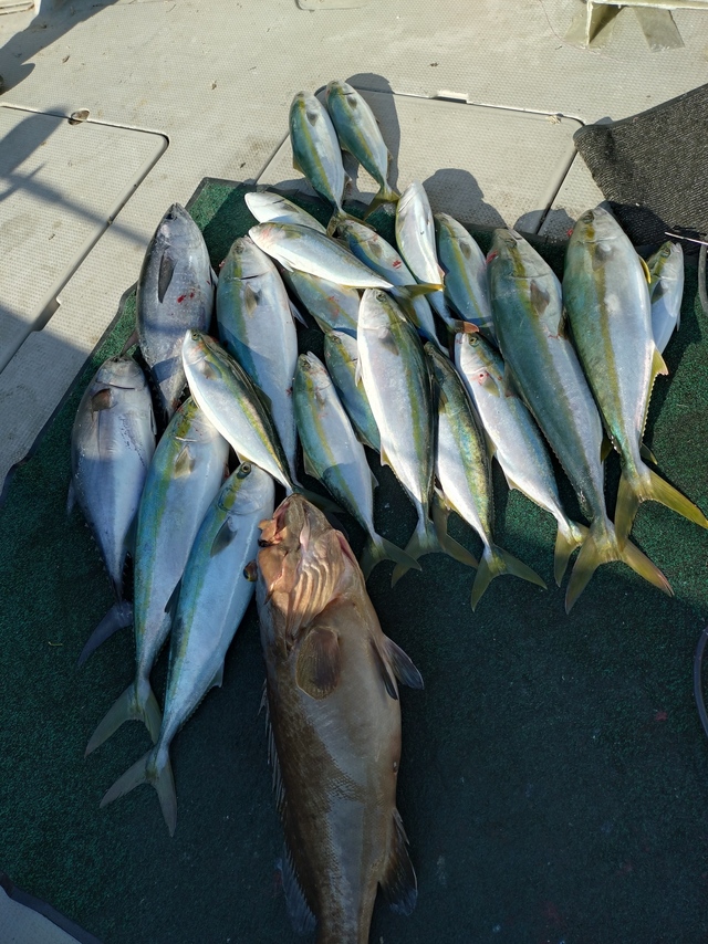 3.00~5.00kg 0~2匹 アオナ 40cm 合計1匹 コシナガ 4cm 合計1匹 ヒラメ 3.00kg 合計1匹 ヤズ 1.00~5.00kg 0~3匹 お疲れ様です! 朝一はいいスタートでしたが それからはかなり厳しい展開でした 厳しい釣果となりました 本日はありがとうございました! またの乗船お待ちしてます!