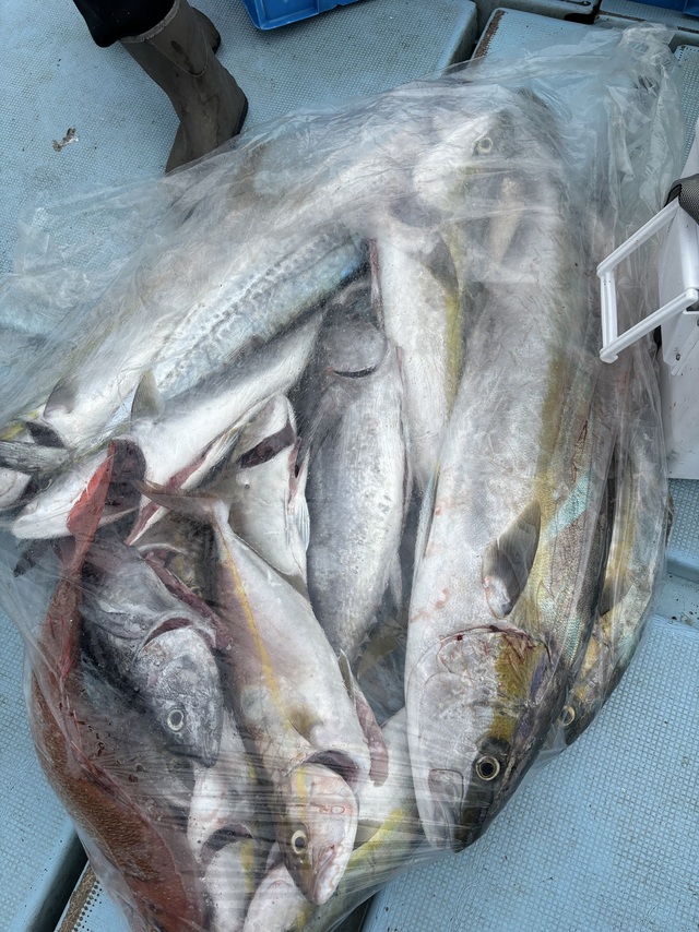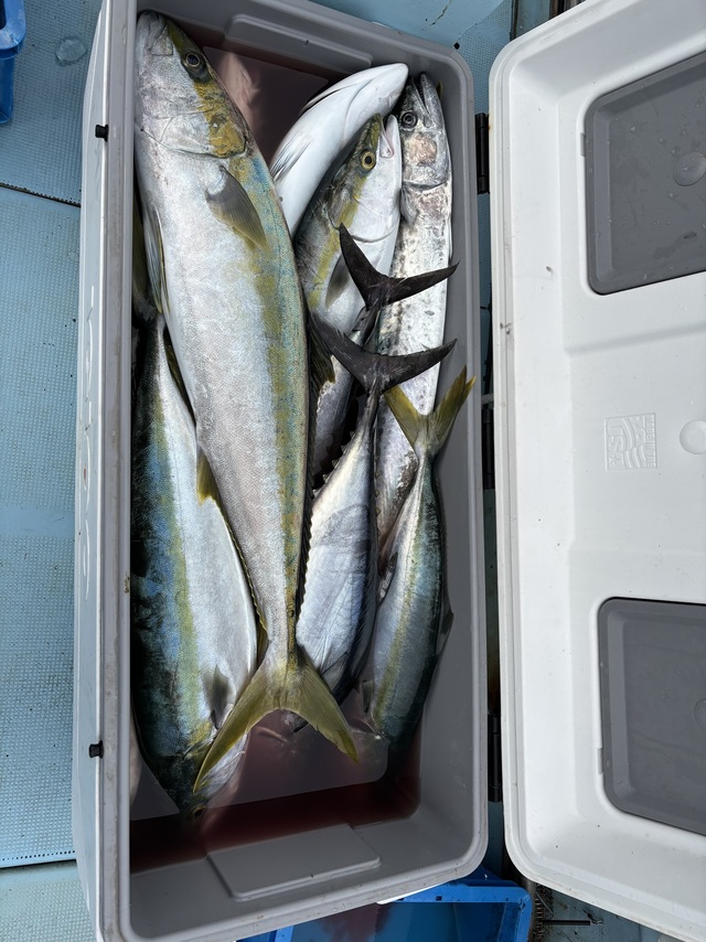 4.00~6.00kg ヤズ 1.00~3.00kg ネリゴ 1.00~1.50kg サワラ 3.00~6.00kg 落とし込み釣り。皆さん楽しく釣れました。