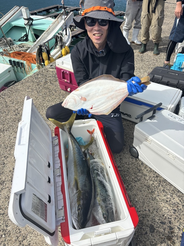 (カンパチ)2.00kg 合計1匹 ヤズ 3.00~5.00kg 0~3匹 コシナガ 1.00~5.00kg 0~2匹 ハマイサキ 30cm 合計1匹 ヒラマサ 3.00~5.00kg 0~2匹 ヒラメ 2.00~4.00kg 0~1匹 アコウ 30cm 合計1匹 マダイ 5.00kg 合計1匹 お疲れ様です! 餌付きはいいんですが 肝心の魚がなかなか当たらず 厳しい1日となりました、 本日はありがとうございました! またの乗船お待ちしてます!