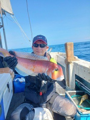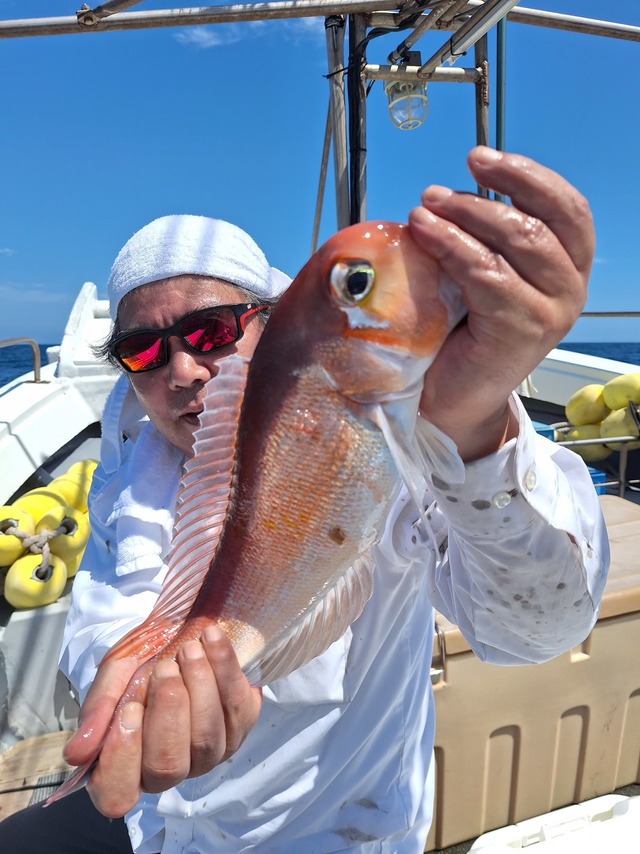 (キダイ)アマダイ イトヨリ アオナ トラフグ 5.00kg 今年も宜しくお願いします。 今日はアマダイ狙いの五目釣りでした。 アマダイ、レンコ、イトヨリ、アオナとマズマズの釣果でした。 5キロオーバーのトラフグも釣れました。 レンコダイは良型です! 4月末までアマダイ・レンコ釣りです。 平日は漁業してますので土日祝のみの出船です。