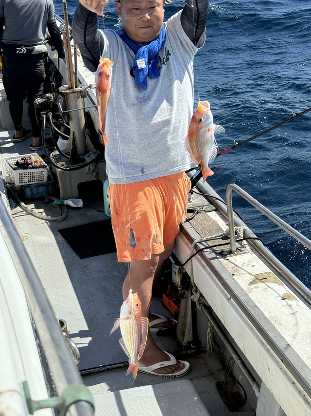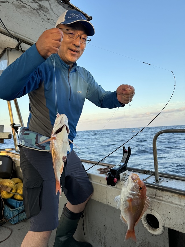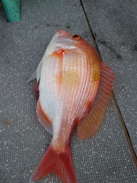 (キダイ)25~35cm 15~30匹 アラカブ 25~40cm 3~12匹 イトヨリ 30~55cm 0~3匹 オニオコゼ 30~40cm 0~5匹 アオナ 25~60cm 3~15匹 チカメキントキ 30cm 合計1匹 朝早くはポツポツとあたりがあるくらいでしたが潮が緩んだ昼前からはあたりも良くなって釣果は良かったと思います、