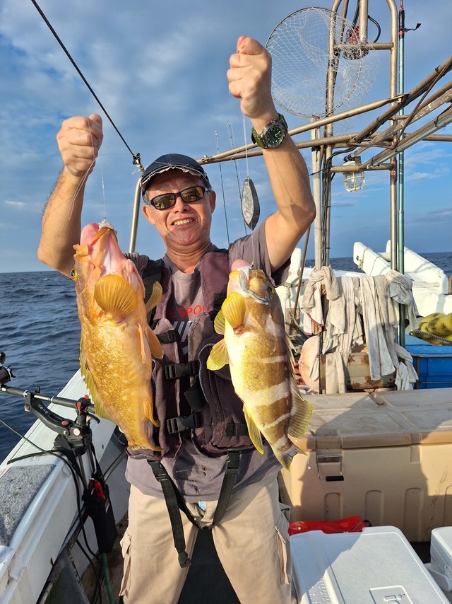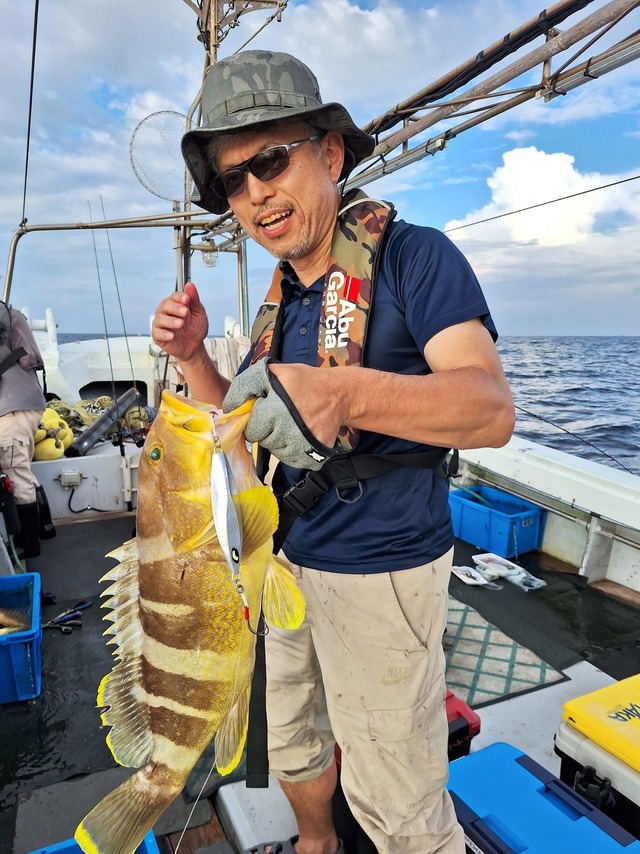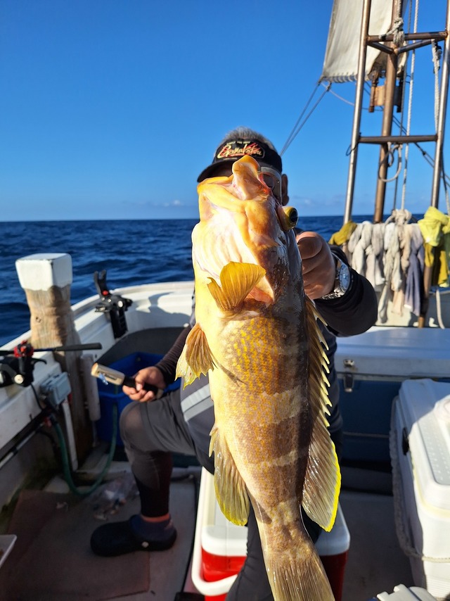 (キダイ)0~1匹 ブリ 最大7.00kg 合計22匹 マダイ 0~1匹 アラカブ 0~1匹 ヒラ 0~1匹 コシナガ 0~1匹 久々の凪予報だったので 今季初のブリジギングメインで出船。 到着から速攻HIT連発で,今日も途中 タモ入れと締めが追い付かずでした。 午前中でクーラー満タンになり, 各自,責任をもって,持ち帰れる分のみキープし 他は,沢山リリースして頂きましたよ。 10キロオーバーも釣れてると聞いてたので 期待しましたが,残念ながら 7キロMAX止まりでした。 例年,ブリもサイズが上がるのが遅くなっており、 今からサイズUPが期待出来ると思いますので 大物狙いで、是非挑戦してみてください。 本日は水深が深い中,最後までシャクって頂き 大変お疲れさまでした。